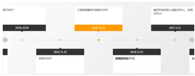 晴天科技官方网站上公布的数据是2016年底销售额突破3个亿,2016年12月单月工程安装量突破1000户,到2017年2月21日,在职人员超过2000人。通过与行业内交流,了解到以上数据基本为实,另了解到晴天科技去年全年出货量在7000-8000套之间。