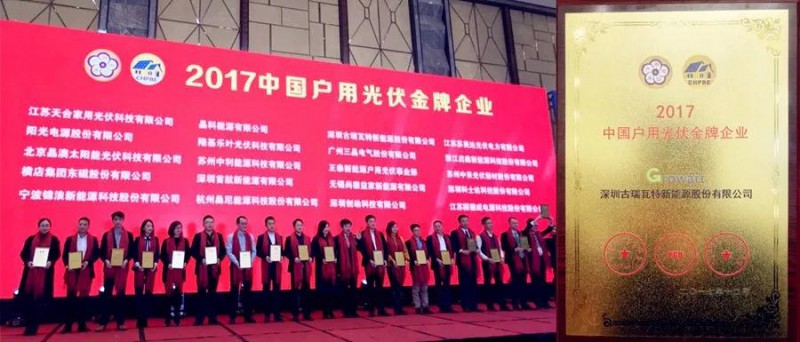 国家能源局发布的最新数据显示,户用光伏市场未来10年全国5000万家庭屋顶有1.5万亿需求,未来市场发展前景非常广阔。毫无疑问,在当前分布式光伏方兴未艾、遍地开花之时,古瑞瓦特依然发挥其强大的“马太效应”,延续着强者恒强的道路。荣获“2017中国户用光伏金牌企业”,充分证明了客户和行业对古瑞瓦特整体实力和成绩的认可。逆变器,作为光伏系统的核心部件,是光伏能源互联网应用的主要入口,古瑞瓦特坚持双+战略,从用户体验出发,以“智能+互联网”和“产品+服务”的商业模式,提升品牌和产品的竞争力。未来,古瑞瓦特仍然专注为用户提供最优的产品和服务,给全球消费者带来清洁高效的绿色能源。