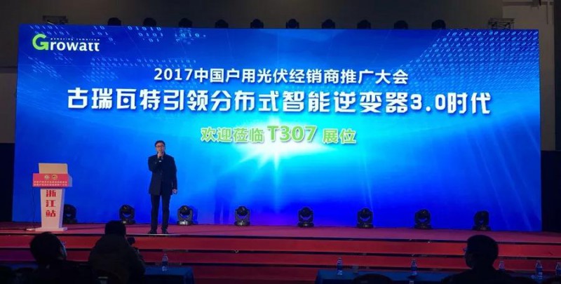 在同期举行的2017中国户用光伏经销商推广大会上,古瑞瓦特以“引领分布式智能逆变器3.0时代”为大会主题,介绍了本次展会推出的明星产品新一代组串式光伏并网逆变器60-80KW,引领分布式未来3.0时代,集高效发电、安全可靠、智能友好、维护便捷四大优势,是高质量光伏电站的不二之选。6路MPPT,12路组串,最高效率达到99%,可灵活匹配山地、丘陵及复杂分布式商业屋顶环境。交直流双供电,24小时实时监控,智能I/V曲线扫描,主动识别组串发电异常,无需额外设备,实现主动无功补偿,全方位电网监测,智能优化电能质量;内置交直流二级防雷,全方位防雷保护,无熔丝和智能拉弧检测,避免引起火灾,集成PID防护和修复,主动防止触电;全天候无功补偿,提升变压器消纳容量,节省投资;本地和远程运维智能化,人机交互更智能友好,节约运维成本。受到现场媒体、观众的强烈关注。