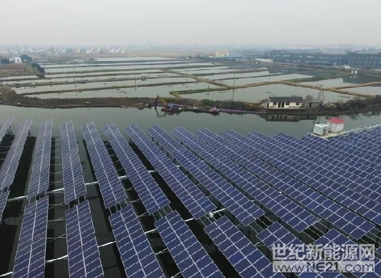 嘉善县陶庄镇夏墓荡,鱼塘上的光伏阵列蔚为壮观。