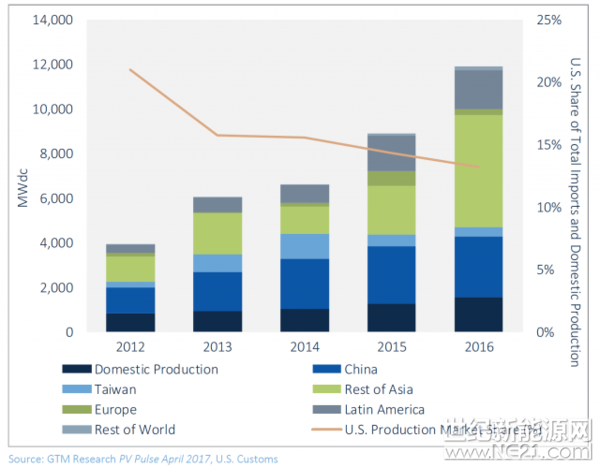 ▲ 美国太阳能模组进口来源统计。(Source:GTM Research / PV Pulse 报告)