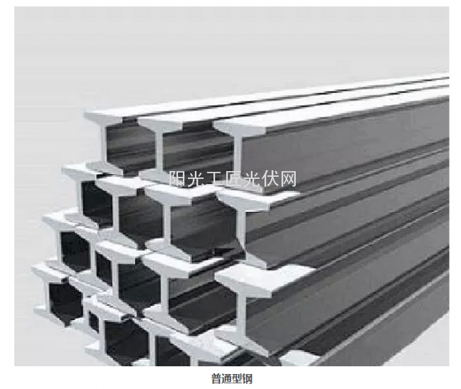 普通型钢常采用冶炼容易、成本低廉的碳素结构钢或低合金钢,截面有很多种类,光伏常用的主要包括工字型、H型、L型及各种设计要求的异型截面。
