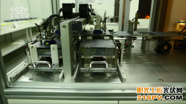 太阳能电池组件车间里,一块块太阳能电池将在这里完成合体,它们通过焊接先串联成排,再并联成片,经过叠层、层压、装框、清洗等工序,一件太阳能组件才真正被制造出来。