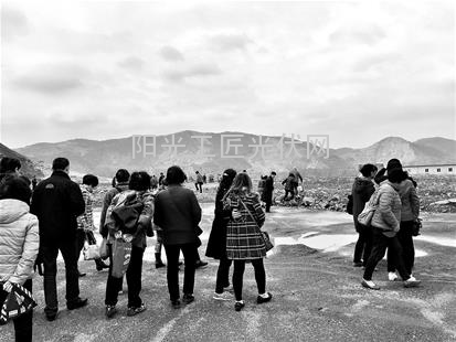 上午11时许,旅游大巴到达武穴市田镇钱炉村。村里的老鹰山被挖去一部分,工地上停有几台挖掘机。
