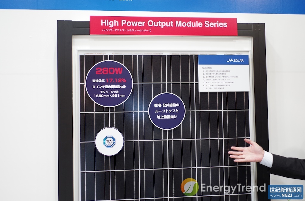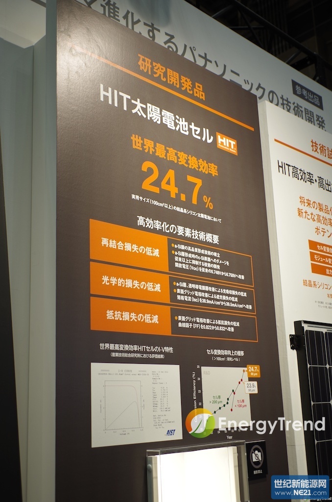 虽然高效转换一直是各方厂商的目标,不过在今年的PV EXPO却更为明显,展示的产品中突破17%的大有人在,如BenQ、JASolar,而LG、Panasonic则有到达18%的产品展示,ReneSolar则达到了19%,不过SunPower则正式进入20%,不过更惊人的是Panasonic还展示了达到24.7%的开发展品,虽然还未进入量产,不过也可由此看到各厂对转换效率的追求。