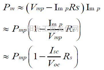 因为填充因子决定着电池输出功率,因此最大输出功率受串联电阻影响,可以近似表示为: