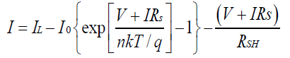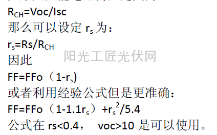 在串联和并联电阻都存在情况下,太阳能电池IV 曲线可以用下式表示:(作者微信公众账号:光伏经验网)
