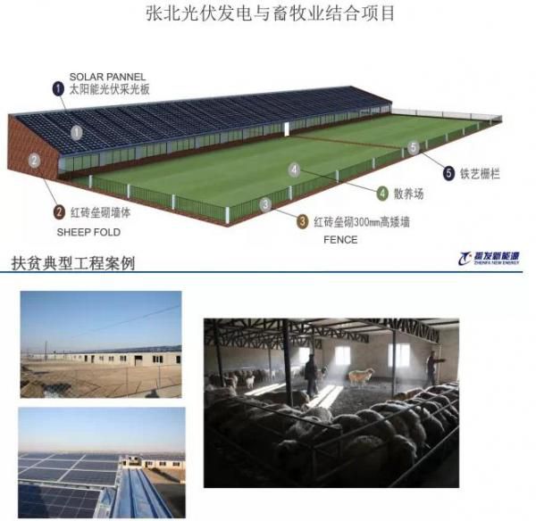 我们跟畜牧业结合的分布式电站:在羊舍上面建分布式太阳能,这是我们在张北地区建的一个试验点。一个简单的算法,1500平米的羊舍作为一个单元,可建一个两百千瓦的光伏屋顶来发电,收益大概每年有20多万。养150只羊,头一年种羊150只,大概1000元一只,大概投15万,羊一年可产两胎,一年下来差不多有450只,留150只做种羊,300只卖掉,便可有一个总收益。也就是投入约300万,一年能有将近50万的收入。