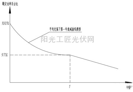 所以在理论计算上,发电量模拟计算的额定功率起始点可以等同于光伏组件出厂时的额定功率,而且一年内组件的衰减可视为线性衰减。