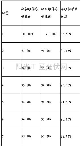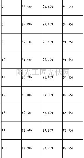 综上所述,以正泰太阳能多晶硅组件的衰减保证为例,25年的年组件平均效率如下表所示: