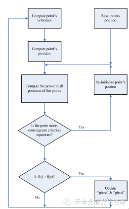 该方法一反之前的追踪法逻辑概念,逆其道而设计。控制器会散播大量的追踪点在IV曲线,在设定的时间段内进行回收及分析。不再是比较向量的变化以及渐进趋势,而是重新绘制一个模拟的IV曲线,进而准确的判定最大功率点。以下是该方法的算法以及判定流程图。