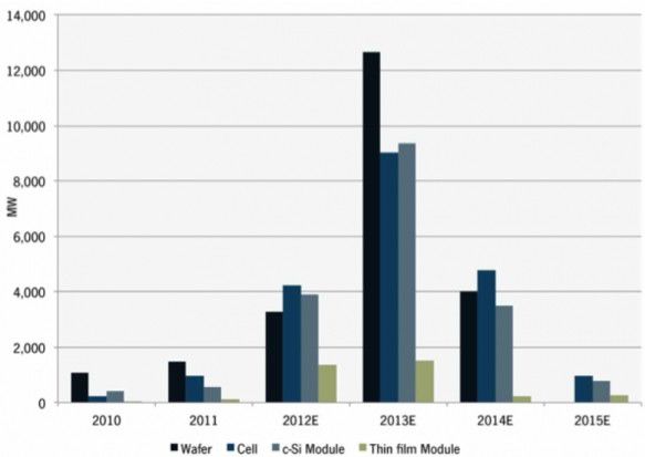 索比光伏网讯:GTMResearch日前公布了最新的光伏行业报告“PVTechnology,ProductionandCostOutlook:2012-2016”,报告称由于全球光伏市场的供需失衡,GTMResearch预计2015年前全球光伏组件制造业将有21GW产能停产。