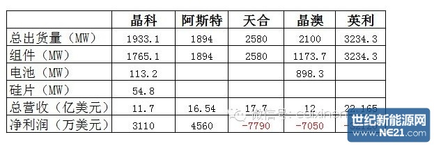 2013年晶科(NYSE:JKS)、阿特斯(NYSE:CSIQ)开始扭亏为盈,天合光能(NYSE:TSL)、晶澳(NYSE:JASO)大幅减亏。