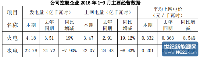 同日,四川川投外公告了前三季度营收情况,2016年1-9月实现营业收入7.00亿元,同比下降11.92%,电力行业平均营业收入增长率-3.63%,本季度营业收入环比上季度下降32.89%;归属于上市公司股东的净利润28.01亿元,同比下12.61%,四川川投本季度净利润环比上季度增长194.64%。据记者了解,1-9月发电量、电价调动的原因主要为:火电发电量同比增长的主要原因是直供用户用电量同比有所增 长;