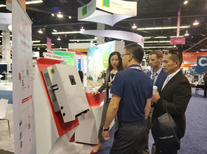 在展会上,科华恒盛面向全球客户介绍了全新光伏储能一体化系统。该方案可灵活应用于大型地面电站、工商业屋顶、家庭户用等场景,适应多种能源接入;针对用户个性用能需求,帮助客户实现能源自发自用,余电上网;通过削峰填谷,实现光伏利用率最大化,解决用户能源利用的储存、微能源网、平滑电能质量等技术问题,有效提高并网发电系统稳定性、电网调度可规划性,吸引来自北美地区及世界各地客户驻足垂询。