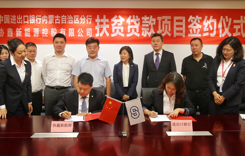 9月4日,中国进出口银行内蒙古自治区分行与装机容量全球第二的新能源企业协鑫新能源控股有限公司签订光伏精准扶贫“金融+”合作协议,为其批复5.4亿元贷款,支持其在内蒙古的光伏扶贫电站建设项目。