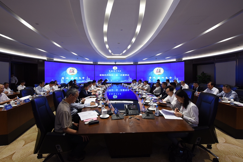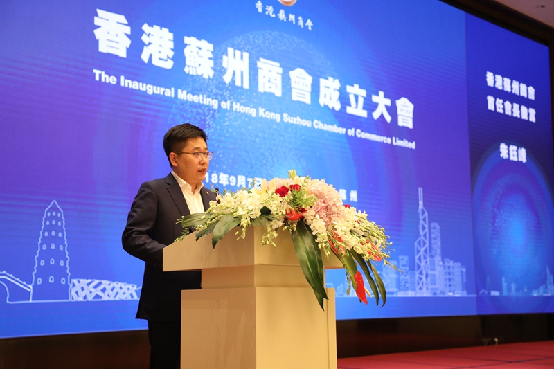 朱钰峰在第一届一次董事会上作筹备工作情况报告,详细介绍商会成立的背景:多年来,苏州和香港的联系、交流、融合非常密切,在众多来苏州投资兴业的境外企业中,香港地区名列前茅。从香港回归祖国的1997年开始,香港工商界人士凭着超前的战略眼光和满腔的爱国热情,纷纷来苏州投资兴办产业,为苏港两地产业、经贸、金融、文化各领域全面、持续、深入合作开辟了新天地。截至目前,苏州已有来自香港的运营企业约3600家,总投资约355亿美元。与此同时,苏州也有一批优秀的企业积极赴港投资、上市,截至今年6月,苏州对香港贸易总额已达96.86亿美元。