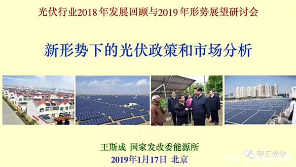 1月17日,王斯成在中国光伏行业协会主办的“光伏行业2018年发展回顾与2019年形势展望研讨会”上做了《新形势下的光伏行业政策与市场分析》的报告。