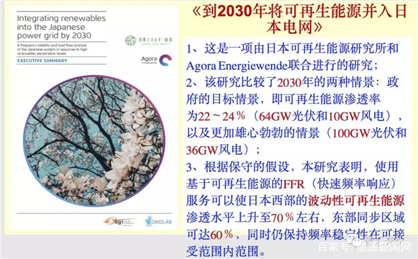 日本可再生能源研究所和AgoraEnergiewende联合进行的研究表明:使用基于可再生鞥能源的FFR(快速频率响应)服务可以使日本西部的波动性可再生能源渗透率水平上升至70%左右,东部同步区域达60%。中国目前尚不足10%,发展的空间还很大!