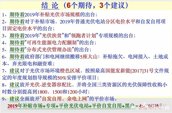 2)最后,王斯成对2019年光伏市场提出了6个期待与3个建议。