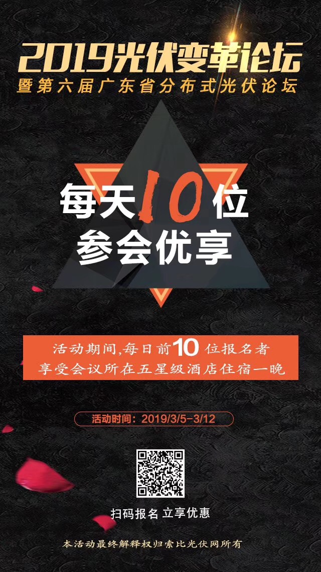 2019广东省光伏论坛 参会报名优惠活动发布通知
