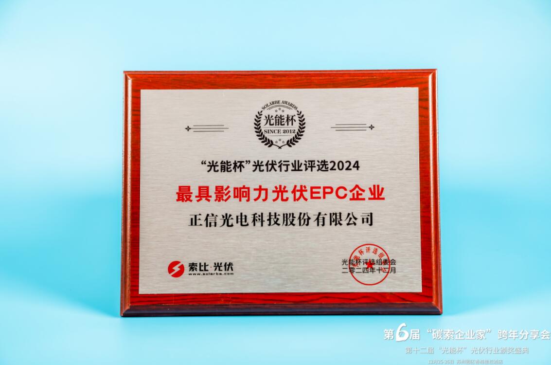 本届“光能杯”共有300余家光伏企业参与报名评选,角逐年度荣誉,线上投票数超13W。此次颁奖盛典中,正信光电科技股份有限公司凭借强大创新力、出色的品质与服务、卓越的品牌影响力,荣膺2024年度最具影响力光伏EPC企业奖。
