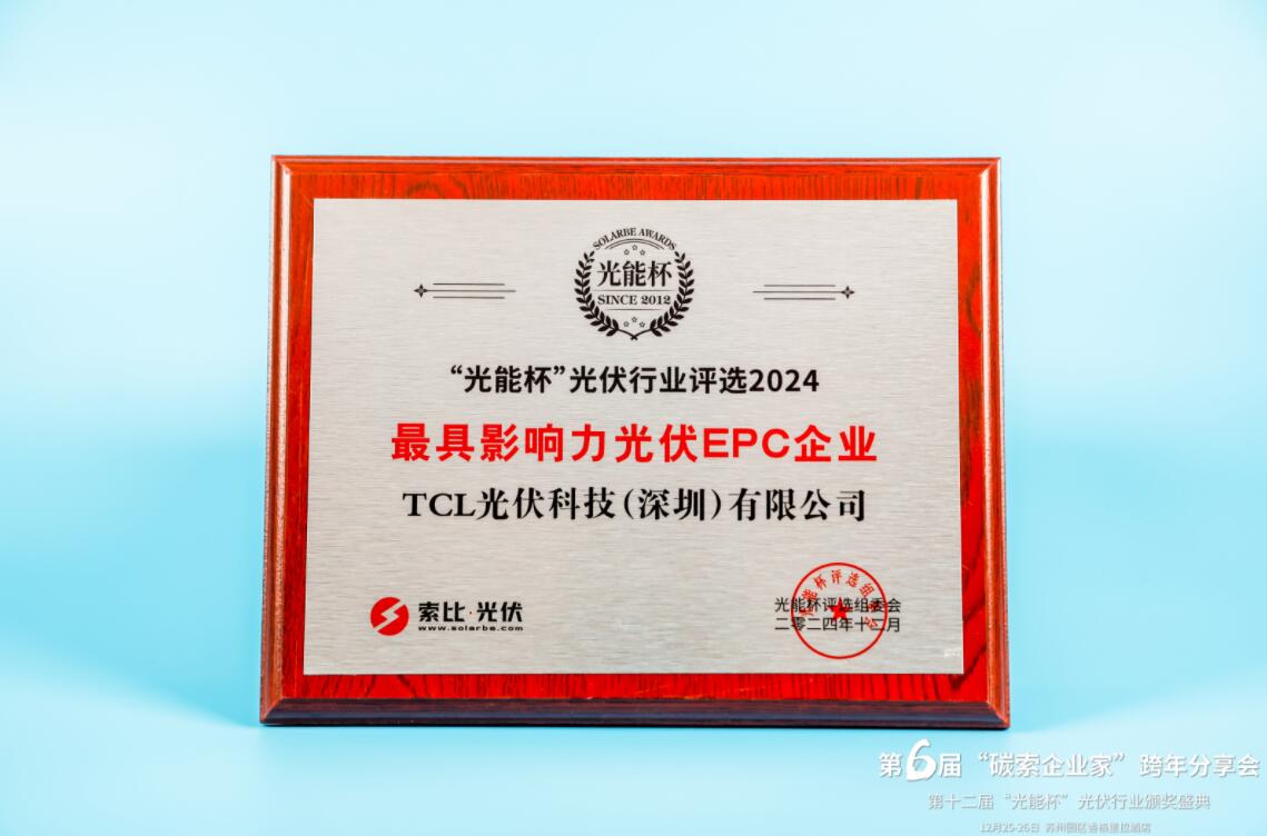 本届“光能杯”共有300余家光伏企业参与报名评选,角逐年度荣誉,线上投票数超13W。此次颁奖盛典中,TCL光伏科技(深圳)有限公司凭借强大创新力、出色的品质与服务、卓越的品牌影响力,荣膺2024年度最具影响力光伏EPC企业奖。