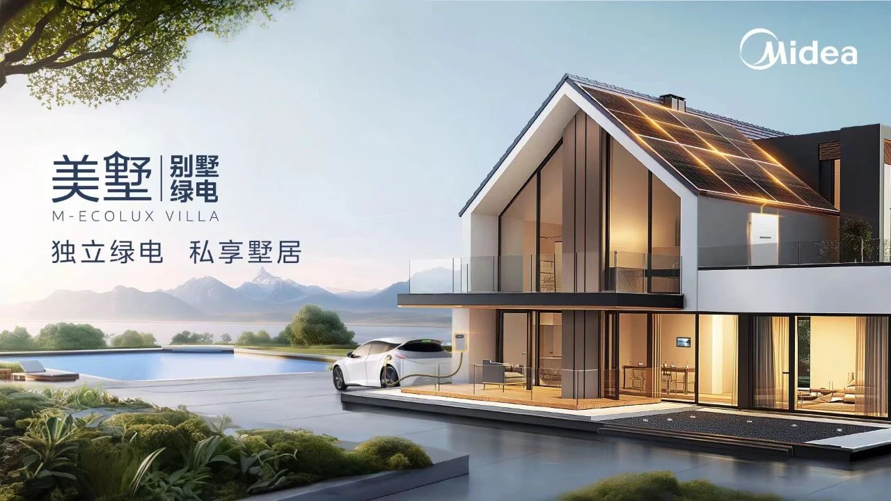 而美墅别墅绿电解决方案也是美的光伏在家庭能源应用场景的一个重要突破。通过将太阳能转化为电能,美墅为用户提供供电、供热、储能和充电桩一体化的绿色清洁能源系统,同时配置智能运维系统,实现实时响应、及时维护,确保系统的稳定运行,构建“产品智能、系统智能、服务智能”的数字化运营模式,轻松调控发电、储能和用电,降碳效果可视化,实现以家庭为单位的用电独立与用电自由。