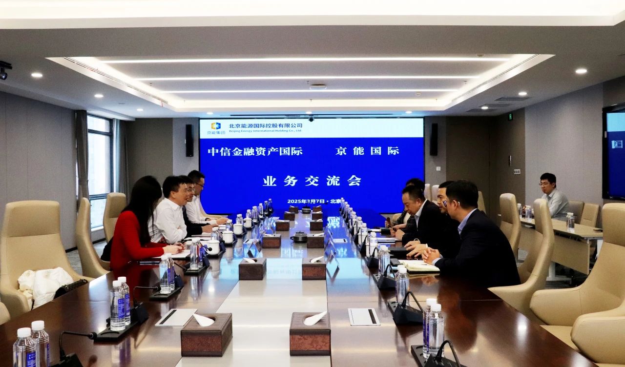 3月7日,北京能源国际控股有限公司董事会主席张平在北京会见中国中信金融资产国际控股有限公司总经理王成一行,双方就境内外融资及新能源项目开发拟开展深度合作进行座谈交流。