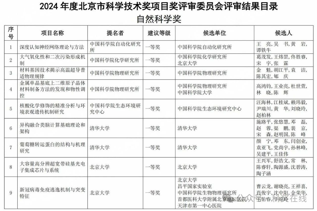 根据《北京市科学技术奖励办法》及《北京市科学技术奖励办法实施细则》有关规定,现对2024年度北京市科学技术奖项目奖评审委员会评审结果进行公示,并将有关事项通知如下:
