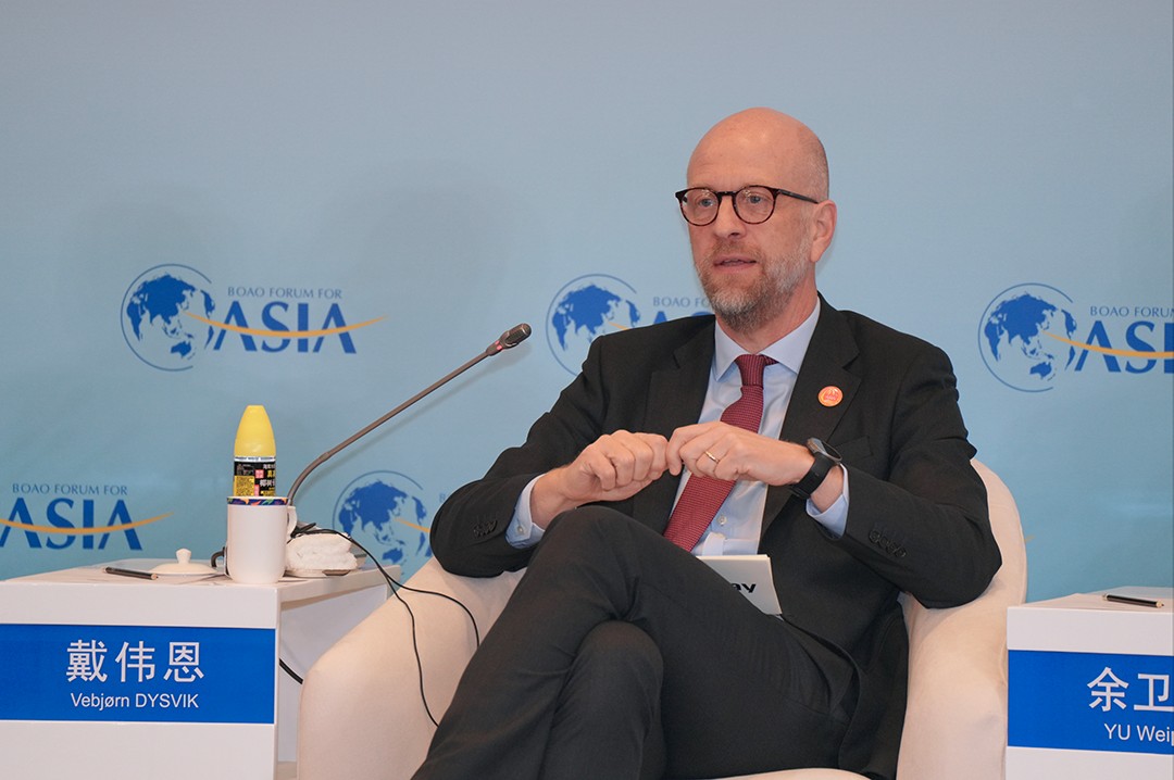 戴伟恩表示,应对气候变化、推动能源转型,国家间的合作至关重要。在绿色转型上,挪威和中国的紧密合作已长达三十多年,希望双方继续围绕碳排放交易、碳捕集与封存、国际航运碳中和、绿氢绿氨等领域深化技术和商业模式创新、项目建设的合作,共同推动两国绿色低碳发展。