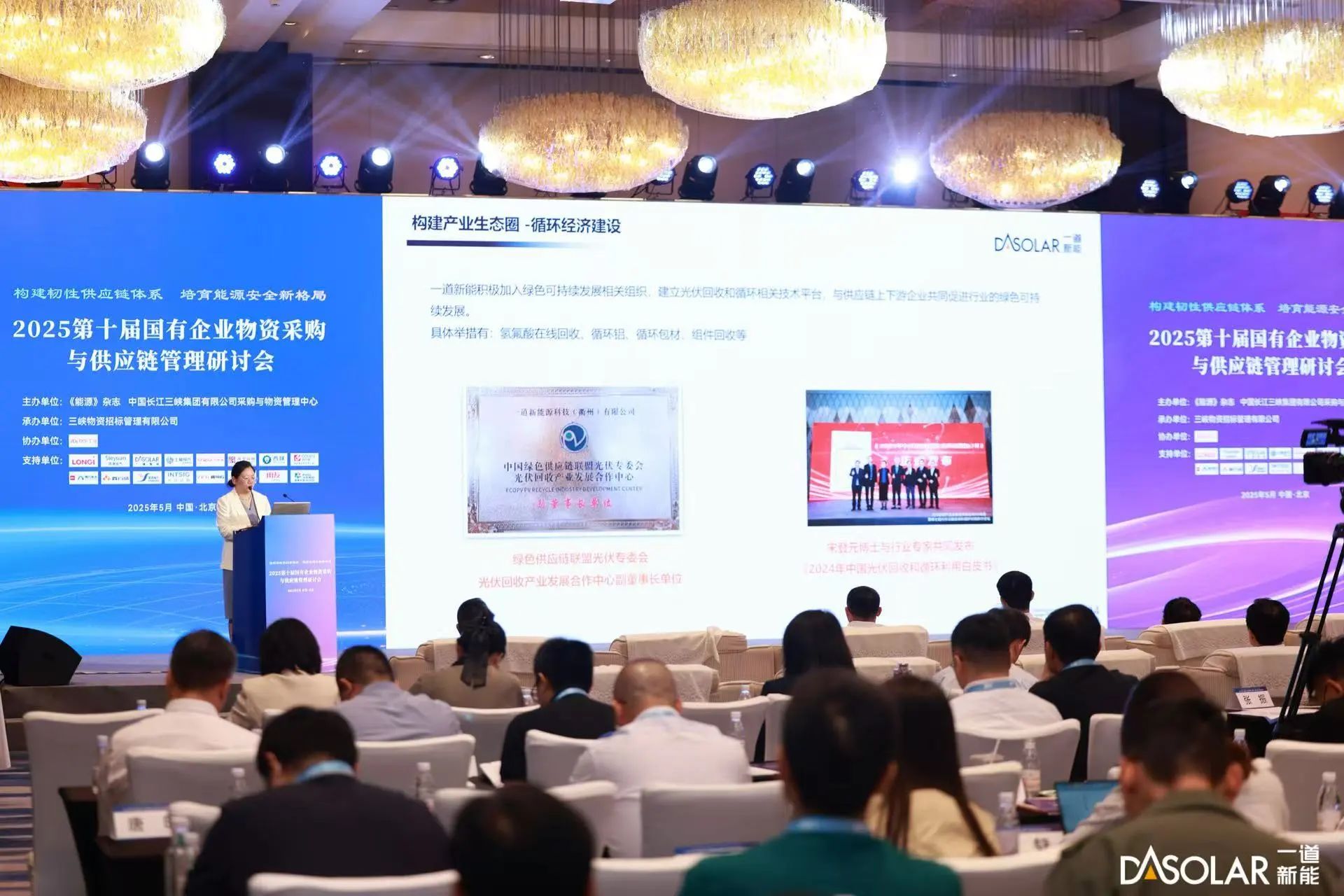 近日,由《能源》杂志、中国长江三峡集团有限公司采购与物资管理中心主办的2025第十届国有企业物资采购与供应链管理研讨会在北京召开,国务院国资委原副主任、《能源》杂志编委会主任王瑞祥先生,中国长江三峡集团采购与物资管理中心副主任孙晓明先生,三峡物资招标管理有限公司党委委员、副总经理张撼难先生,中国华电集团物资有限公司党委委员、副总经理刘雨平先生,华能能源交通产业控股有限公司(华能集团物资供应中心)总经理助理薛轶峰先生等领导参加会议。一道新能高级副总裁黄卫红女士应邀出席并作《双技术驱动绿色可持续发展—一道新能可持续发展之道》主题报告。