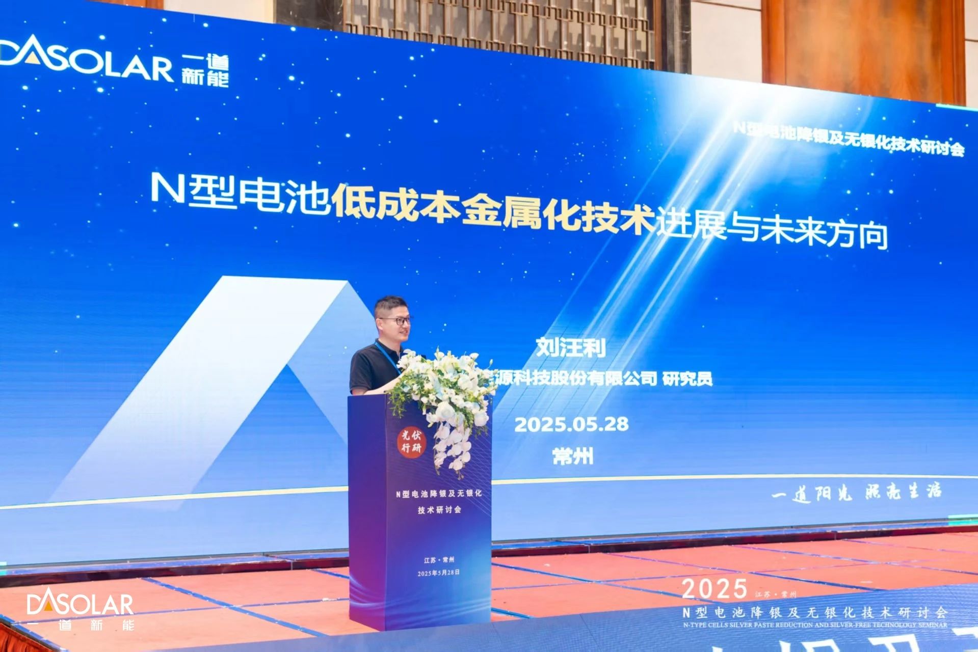 为进一步推动N型电池银耗降低,构建新型浆料创新生态,助力光伏产业绿色降本、可持续发展,2025年5月28日,由光伏行研、常州市光伏行业协会联合主办的N型电池降银及无银化技术研讨会在江苏常州举行,一道新能研发中心高级经理刘汪利先生受邀出席发表主旨演讲,向与会来宾分享了一道新能高效N型电池降银及无银化技术的关键进展与前沿探索。