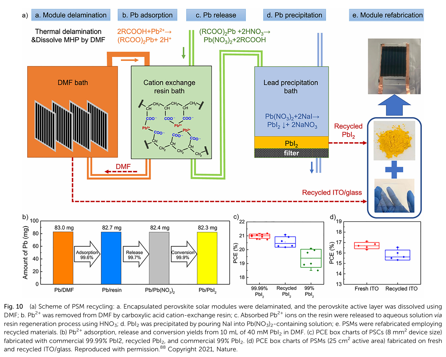 实现器件层层剥离,回收包括:TCO、CTM、有机层、PbI₂等;