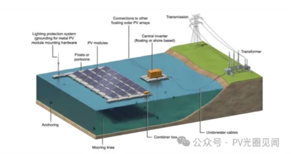 水电站水面光伏系统是在水电站水库的浮式平台上安装太阳能电池板。该系统在白天发电,而在阳光不足的时段,由水电站提供持续的电力。