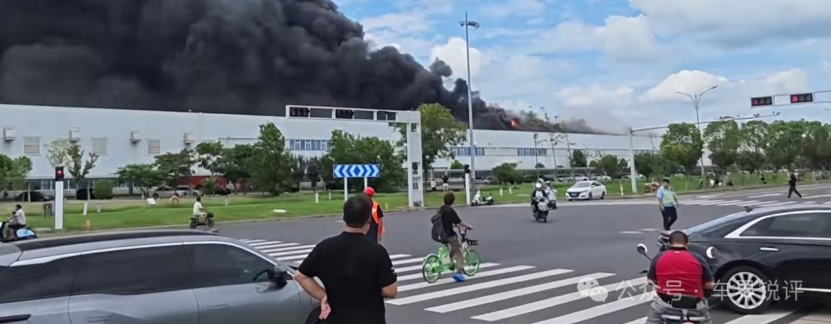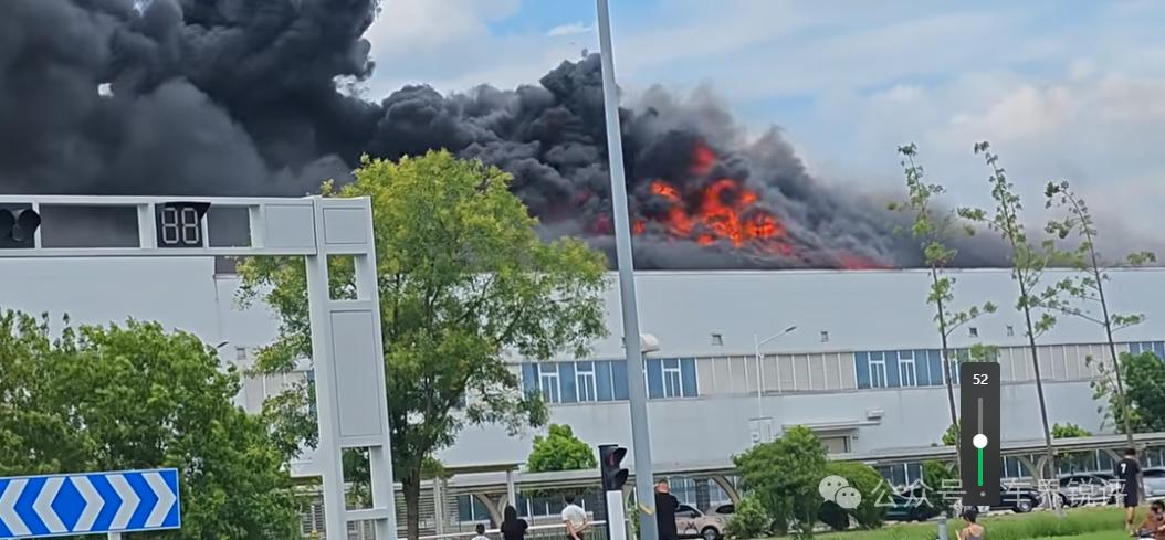 7月21日下午,江苏常州蜂巢能源工厂浓烟滚滚,过路市民纷纷驻足观看。