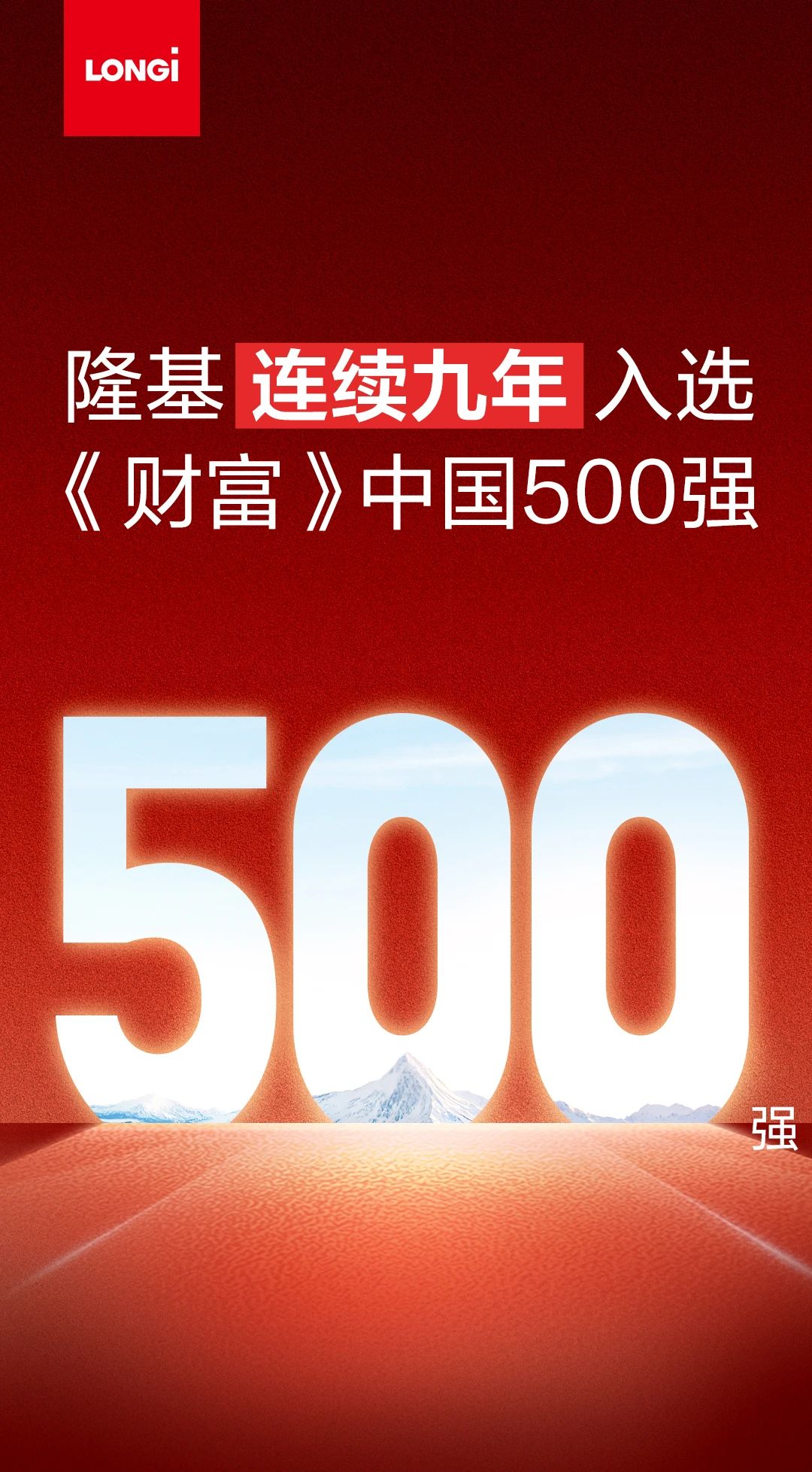 7月22日,财富中文网发布2025年《财富》中国500强排行榜,隆基位列第227位。这是隆基自2017年首次上榜以来,连续第九年跻身这一榜单。