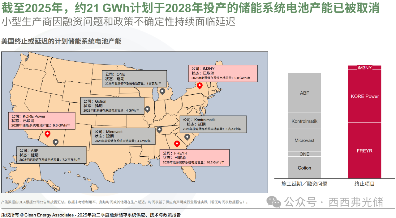21 GWh的ESS电池制造产能取消对美国清洁能源市场构成了显著挑战: