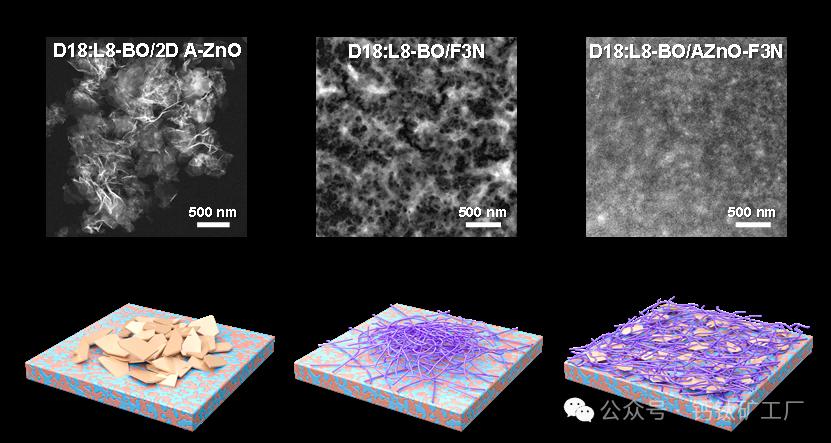 针对上述挑战,中国科学院大学/天津大学黄辉教授、蔡芸皓副教授课题组创新性地提出了有机/无机双组分协同策略,首次将二维非晶氧化锌(2D A-ZnO)与有机界面材料PNDIT-F3N复合,构建有机/无机复合界面(AZnO-F3N)。该设计不同于传统复合界面的单向修饰,有效利用2D A-ZnO与PNDIT-F3N之间的协同作用,显著降低了界面缺陷密度,提升了界面电导率与薄膜均匀性。