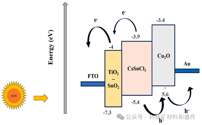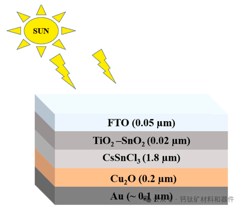 印度圣雄甘地中央大学(India's Mahatma Gandhi Central University)、巴拿勒斯印度教大学(Banaras Hindu University)、日本丰田技术研究所(Japan's Toyota Technological Institute)和台湾国立阳明交通大学(Taiwan's National Yang Ming Chiao Tung University)的研究人员对一种由FTO/TiO2-SnO2/CsSnCl3/Cu2O/Au 构成的器件结构进行重点研究,以提高器件的性能。