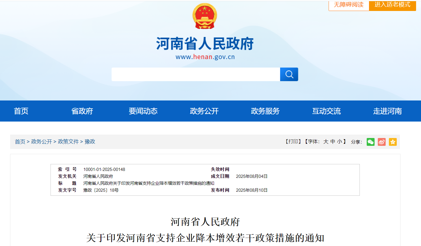 关于印发河南省支持企业降本增效若干政策措施的通知