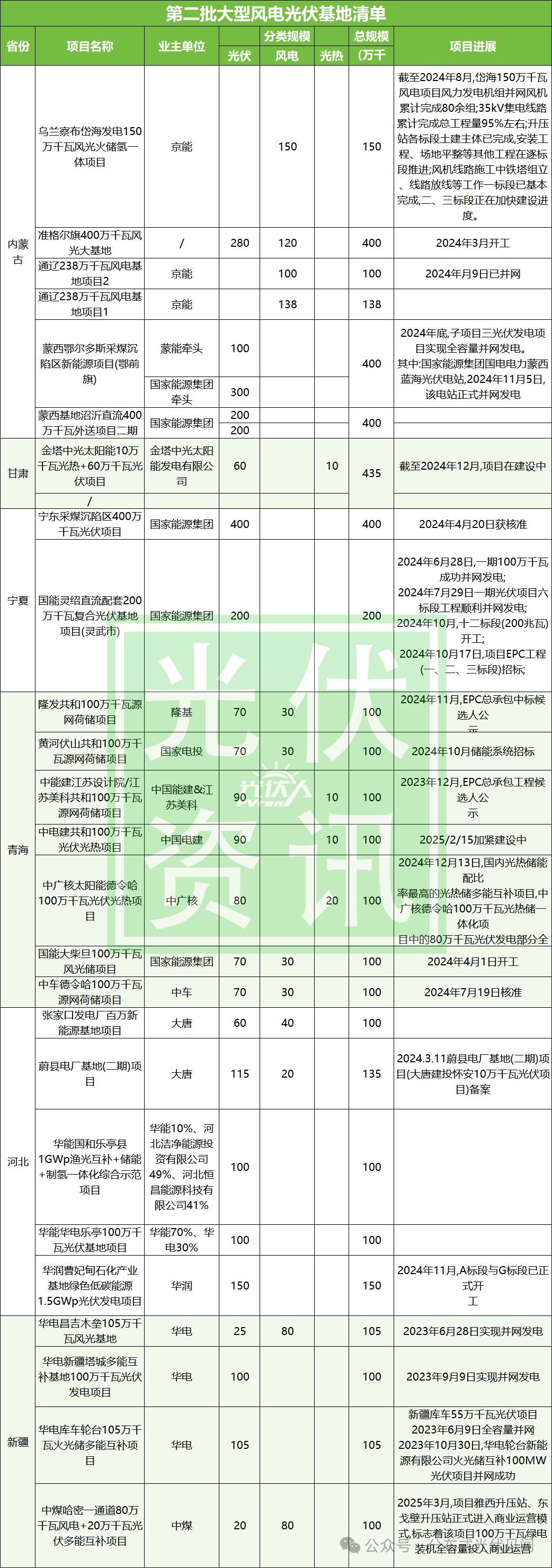 第二批沙戈荒大基地部分具体如下:
