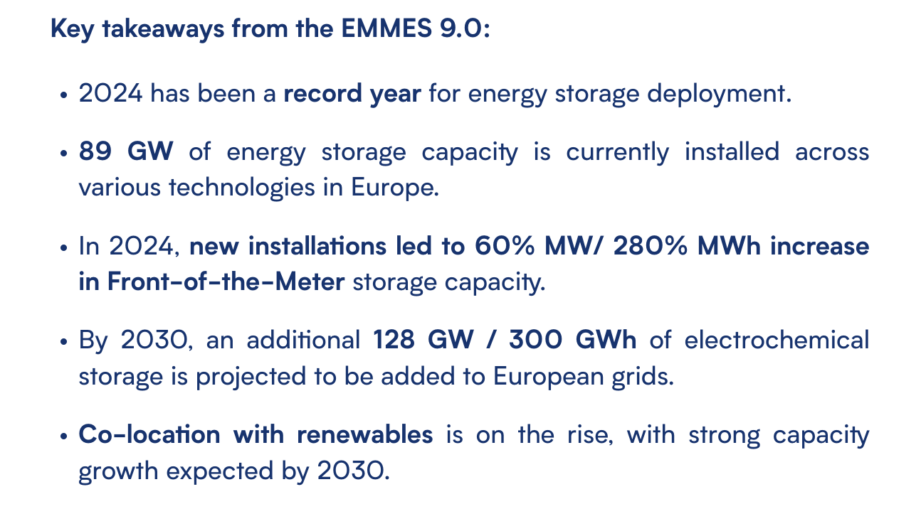 根据《欧洲储能市场监测报告(EMMES 9.0)》数据:截至2024年底,欧洲储能总装机容量已达89GW,预计到2030年将新增128GW。