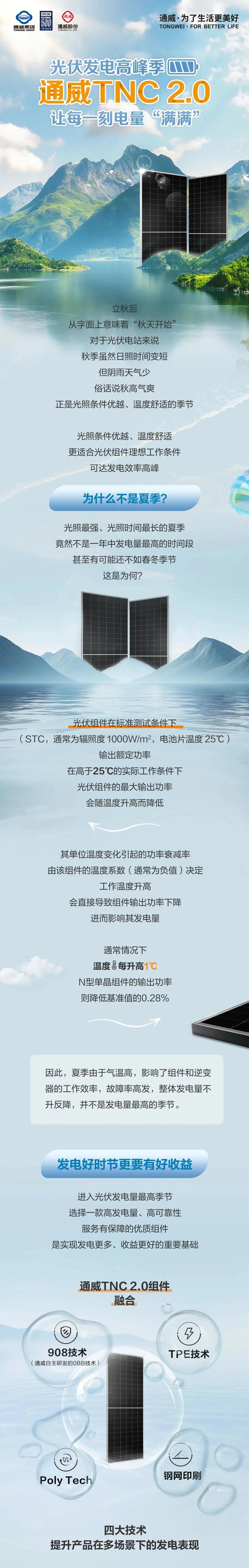 光伏发电高峰季 | 通威TNC 2.0让每一刻电量“满满”