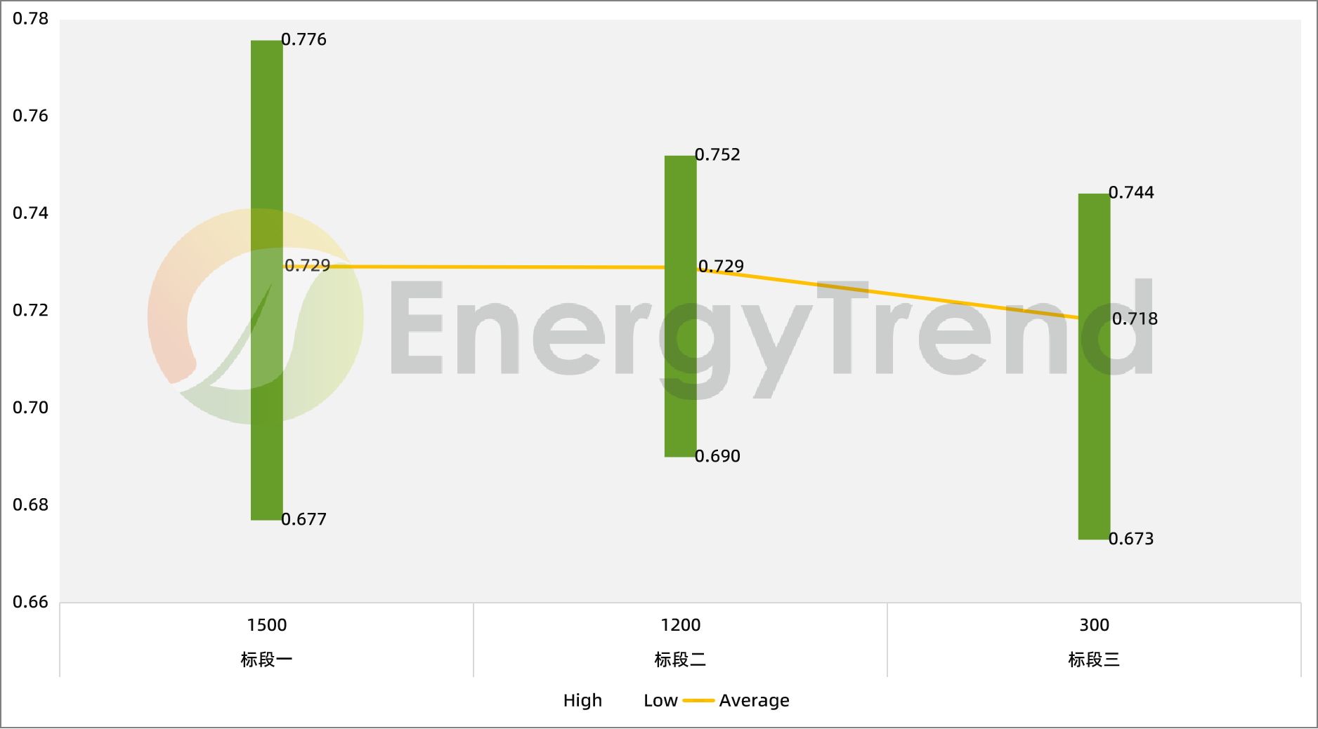 从技术路线上看,明确为N型组件的投标价格区间在0.701-0.74元/W,均价达0.715元/W。具体细分来看: