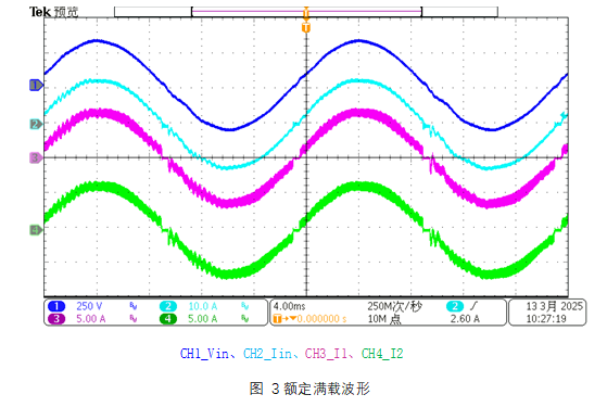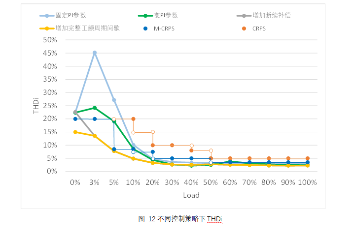 如图12所示,继续增加完整工频周期间歇控制策略后,THDi指标全负载范围内满足M-CRPS标准要求。