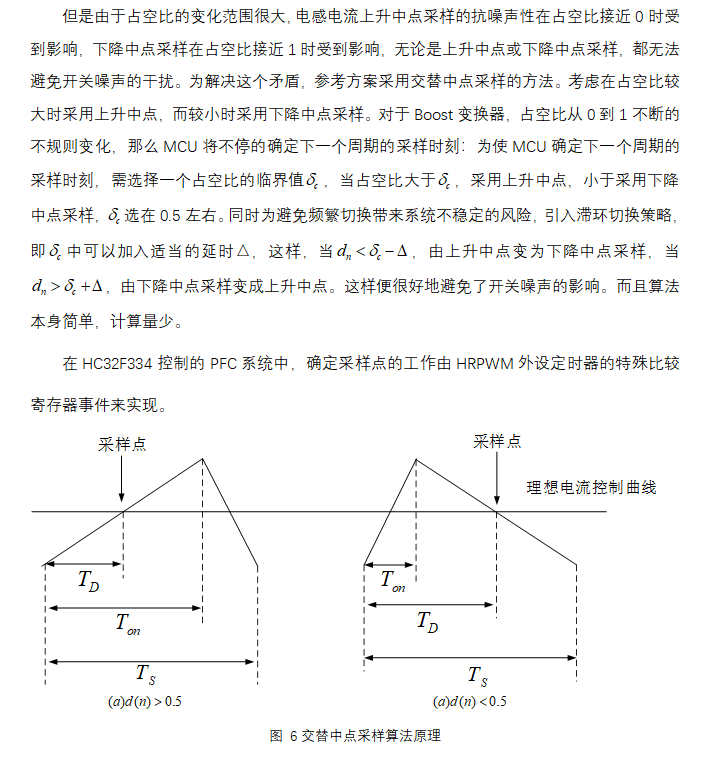 参考方案内环采用平均电流控制,要使用平均电流控制,常常采用电感电流上升中点或下降中点采样,开关开通或关断时间的中点作为相应的参考采样时刻,这样,采样所得信号就是电感电流平均值,可以精确的表示输入电流的波形,同时避免开关噪声的影响、提升系统可靠性。
