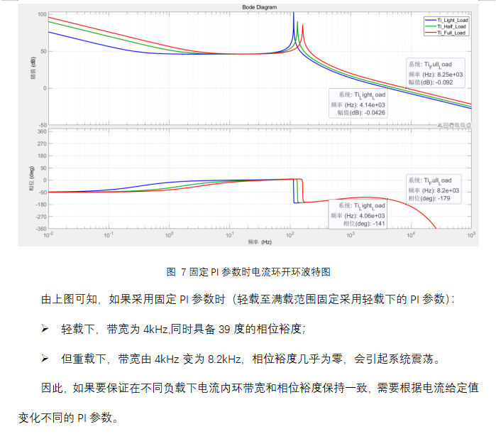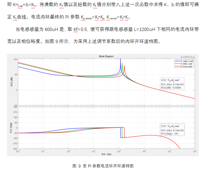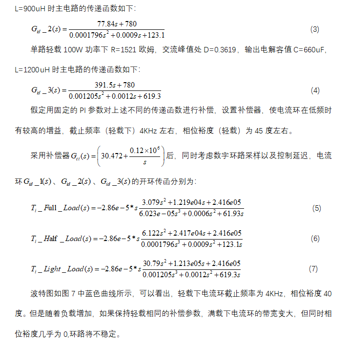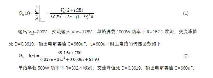 公式(1)为电流环的主电路传递函数表达式。满载电流峰值处,电感感量为600uH,轻载电流峰值处电感感量为1200uH。