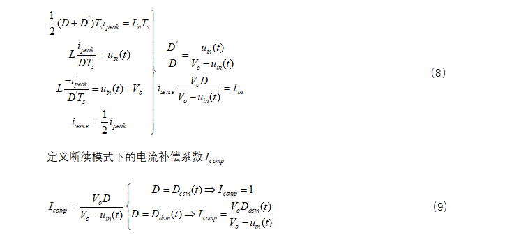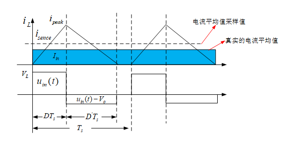 如图10所示,负载较轻时,电感会进入断续模式,此时的采样电流与实际的输入电流是有偏差的,真实的电流平均值比实际采样值要小,若不进行矫正,会导致电流跟踪出现偏差,影响轻载的电流THD。