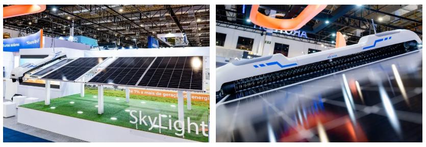 在本次展会上,中信博重点展示了针对复杂地形场景的“跟踪+智能清扫机器人”解决方案。
